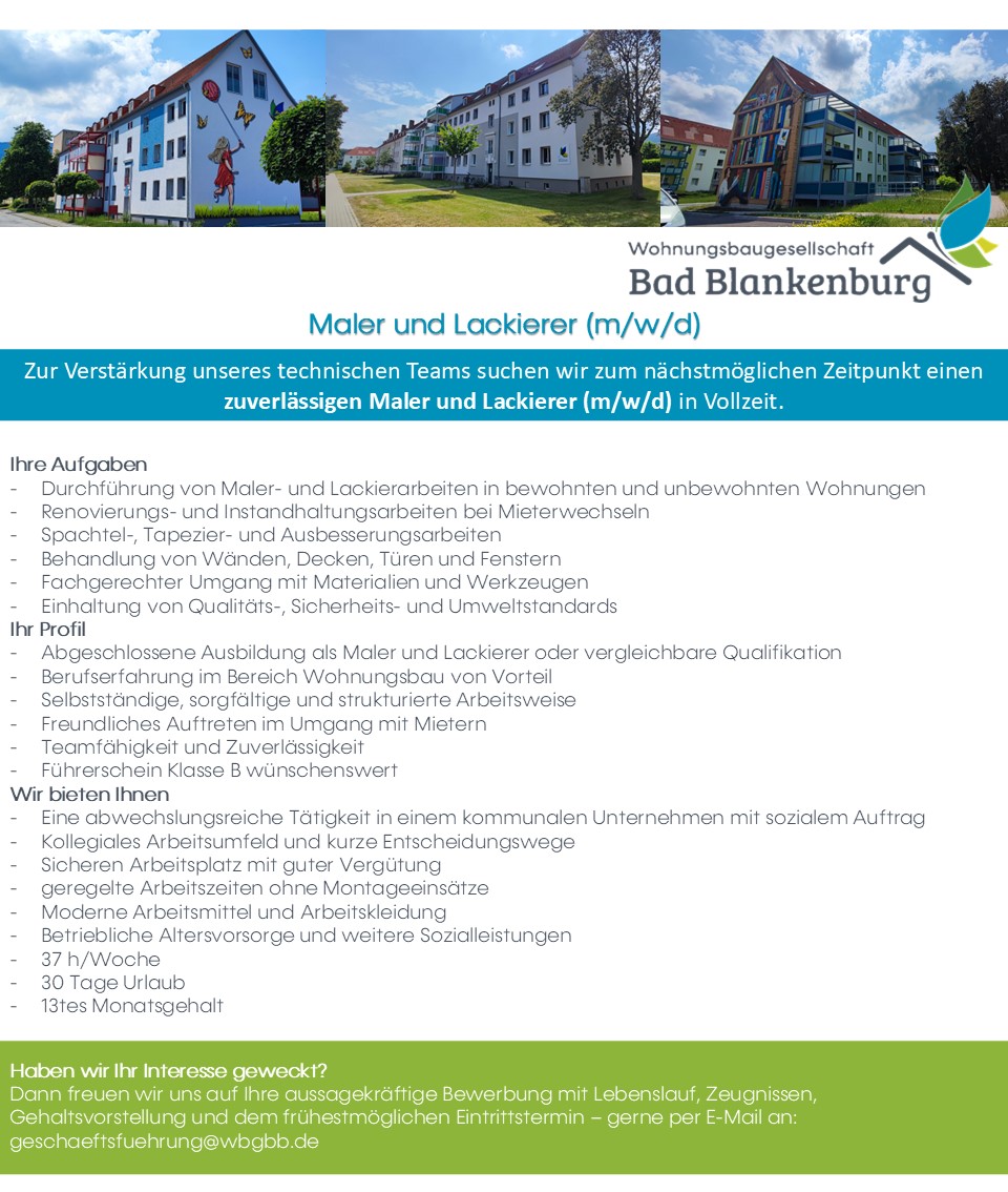 Schicke uns Deine Bewerbungsunterlagen per E-Mail an info@wbgbb.de.